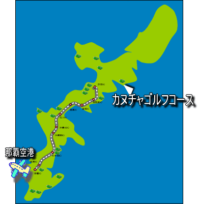 カヌチャゴルフコース 丘陵コース。太平洋に面し、アウトはビレッジコースと呼び、沖縄ならではの木々の間をぬうようにレイアウトされている。フェアウェイは広いが、飛距離よりもポイントで攻めることがスコアメイクのカギ。インはシーサイドコースと呼び、その名の通り雄大な太平洋を見ながら豪快なショットを楽しむことができる。またコース全体に池・バンカー・マウンドが巧みに散りばめられ、頭脳的なプレーが要求される。