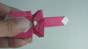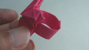 桃色の折り紙を使います |