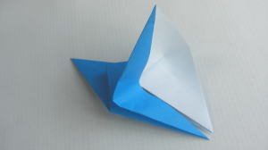肩から上の部分を先ほどと同様に内側に折り入れて行きます |