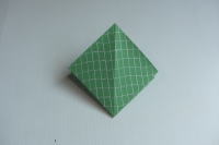 先ほど折り目を付けた部分から中心部分が陥没するように折ります |
